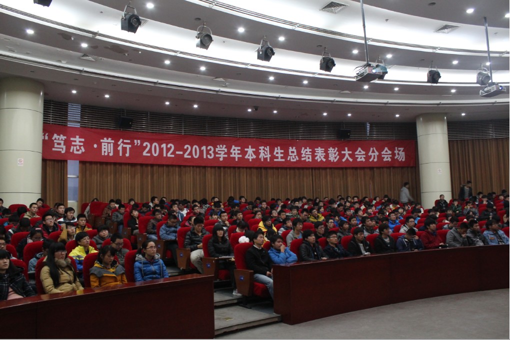 2013年12月6日下午4点,以“笃志·前行”为主题的2013学年本科生总结表彰大会分会在一号楼四楼报告厅隆重召开。大会由民航/飞行学院与航空宇航学院的学生共同组织观看,民航/飞行学院以此为契机圆满召开了“榜样·方向”年级大会。本次大会共分为四部分,第一部分为“说出困惑,交流分享”;第二部分为集体观看“笃志·前行”2012—2013年本科生总结表彰大会;第三部分为学院“特区之星”的事迹宣讲;第四部分为“寻找我们身边的榜样”。