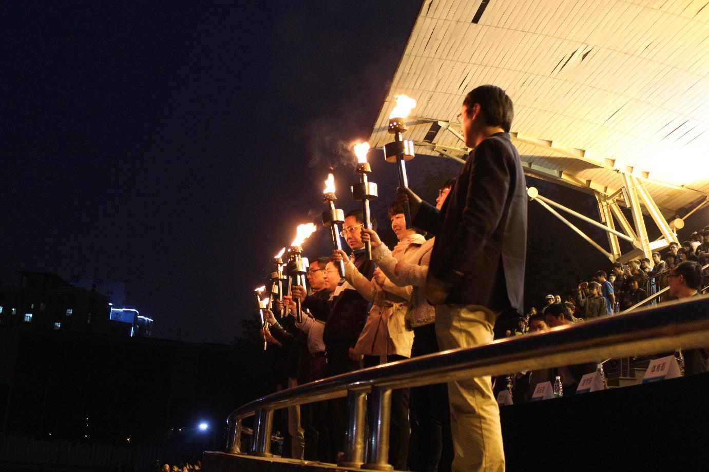 比赛在民航/飞行学院带来的热情洋溢的啦啦操表演中拉开序幕,运动员代表芦伟同学宣誓之后,国旗护卫班和优秀学生代表护送国旗和火炬进场。随后各学院领导把火炬传递给每支参赛队伍中领跑的运动员,紧张激烈的比赛正式开始。每支接力队由十男两女组成,分别绕着操场外的指定路线和操场跑道完成接力。黑暗中闪烁的火光,运动员们矫健的步伐,观众们热情的呐喊,青春的光芒在校园的每个角落闪耀。在比赛过程中,最引人注目的要属民航/飞行学院和继续教育学院的角逐,两个学院互相赶超,始终名列前茅。随着比赛进入白热化阶段,民航骄子们凭借一个多月艰苦训练磨练出的实力与毅力,逐渐拉开了与对手的距离。最终,民航/飞行学院不负众望,以远超第二名的成绩第四次蝉联桂冠。继续教育学院获第二名。