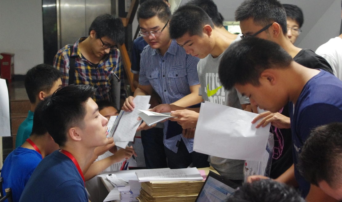 的报到处。也有不少家长陪着自己的孩子,他们手里提着大包小包,风尘仆仆,脸上却掩饰不了自己孩子考上研究生的喜悦。本次新生报道采取现场网上注册的形式,现场的工作人员相互分工,每道流程都有条不紊的进行着。报道时,学院研会的成员还特地准备了新生“注意事项”,上面列出了许多新生需要注意的地方,也有提醒新生报道的顺序,以及入学的一系列安排。现场还特地安排了工作人员为新生答疑解惑,指导新生按照报道注册的流程需要去到哪些地方、完成哪些手续等等。等办好手续,填好资料,拍照的同学热情的迎过来请新生站在二次元