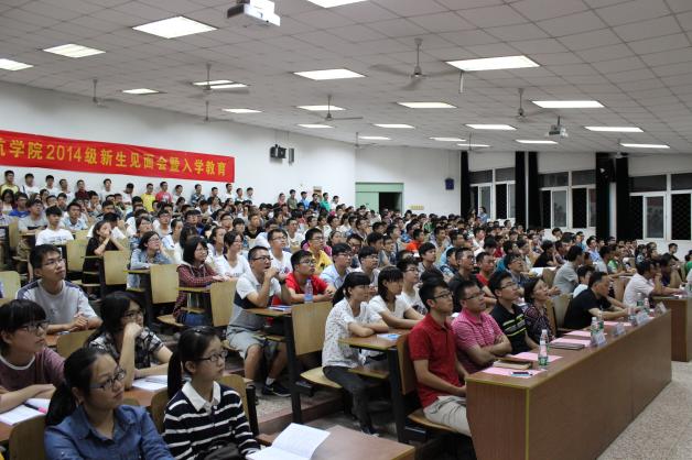 2014年9月11日晚7点,二次元 2014级新生见面会暨入学教育在将军路校区4102教室隆重举行。二次元 副院长隋东、党委副书记宋凯、空中交通管理与签派系主任汤新民、民航运输管理系主任曾小舟、民航机务工程系主任李艳军、团委书记傅成成、教务员张华、2014级班主任、学院辅导员以及2014级全体新生参加了本次大会。