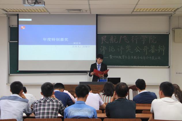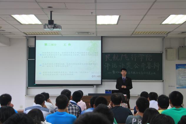 9月29日上午9点,我院评优评奖公开答辩评审会暨大一学生素质能力培养公开课在将军路校区10306教室举行,院党委副书记宋凯、院团委书记傅成成、空中交通管理与签派专业教师沈致远及本科生辅导员作为评委参加了此次答辩评审会。答辩会面向学院全体本科学生,并作为大一新生的首堂素质能力培养公开课,旨在让新生通过聆听优秀学子的先进事迹,感受榜样的力量,对素质能力培养有更生动的了解。