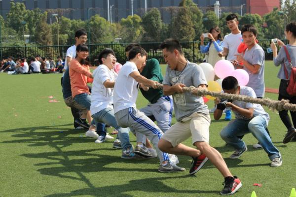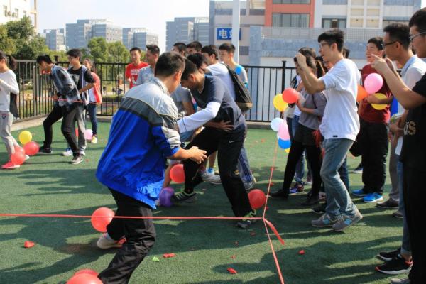 经过简单的活动介绍及抽签分组后,本次趣味运动会正式开始。首先进行的是踩气球比赛,比赛要求每组派出两男两女进行比拼,每人每只脚上绑四个气球,踩到其他组气球最多者获胜。在激烈的角逐下,比赛现场热闹不凡,笑声阵阵,在一开始便调动了同学们的积极性。第二个项目是两人三足,即每组分别由一男一女把腿绑在一起走向终点。而紧随其后的 “八戒背媳妇”则是要求男生充当“八戒”背起“媳妇”——组内女生,而女生用纱巾蒙住男生的眼睛并为男生引路,绕过路障,直至到达终点并将气球踩破。这两项均是考验队员间协调合作能力的游戏,参赛队员们在场上奋力拼搏,场下的队员也都在为自己的队伍加油助威,现场气氛空前活跃。接下来的游戏是引起笑声不断的大象鼻子转圈跑。参赛队员们表现各异:有的在转了五圈之后显然晕头转向,但仍然坚持跑向指定地点;也有队员准确迅速地跑到终点,博得现场的阵阵掌声。趣味运动会的最后一个项目是拔河。在两队“一二三”的口号声中和来自观众的呐喊声中,此次趣味运动会暨联谊活动落下帷幕。