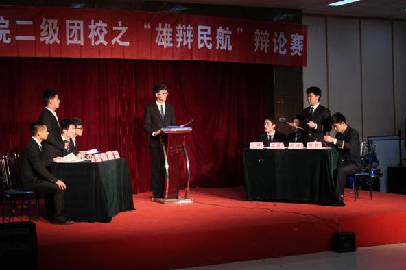 2014年12月19日,民航/飞行学院二级团校系列子活动之“雄辩民航”辩论赛暨民航/飞行学院14级新生杯辩论赛决赛在艺术中心多功能厅激情开赛。此次辩论赛决赛的评委有14级辅导员梁欢及院学生会的多位常委,同时比赛也吸引了大量同学前来观看,尽显民航学子风采。