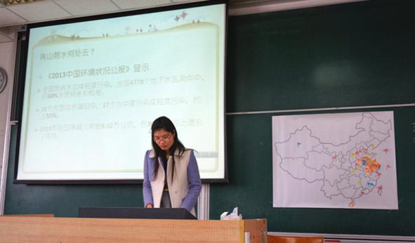 活动开始,各位同学按照自己家乡近20年的污染变化情况,选择不同颜色的小旗,写上自己的名字,贴在预先准备好的地图上,制作成我院学生自己家乡的“污染分布地图”。通过柴静的纪录片《穹顶之下》视频引入,并辅以数据和图片,展示我国近年来环境恶化的现实和趋势。同时,结合两会政府工作报告的与环境保护与生态建设相关内容,使同学们深深认识到现今我国生态环境所面临的挑战,以及当前环境保护所面临的艰巨任务。生态环境的恶化令大家痛心疾首,触目惊心的污染现状引起了大家的强烈共鸣。在随后的互动环节中,同学们踊跃发言,积极分享了家乡二十年的环境变化,引起了大家对童年时青山碧水的追忆,认识到环境污染已经影响到每一个人的生活,每个人都有责任肩负起保护环境的使命。