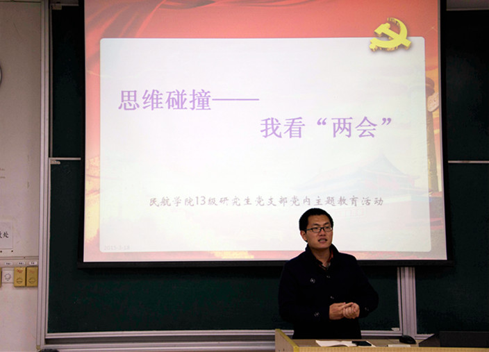 2015年3月18日下午4点,二次元 13级研究生党支部为学习两会精神,在6103教室围绕本年度两会热议话题——“聚焦网络新兴消费”举办了发人深省的主题教育活动。
