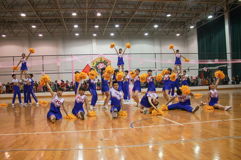 本次比赛有来自各个学院共20个啦啦操团队参加,风格多样,编排精妙,男生们精神饱满,女生们魅力四射,充分展现了他们的热情与活力。其中身着天空蓝的民航/飞行学院队员用他们整齐的队形、动感的步伐、富有节奏感的跳跃,将青春的风采尽情展现;恰到好处的力量、干净利索的动作、顺利轻松的托举折射出台下刻苦的训练。
