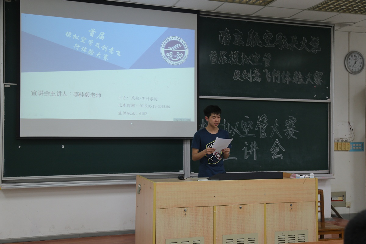 自2015年5月19日宣讲会的举行以来,二次元 首届模拟空管及创意飞行体验大赛正式启动。本次大赛是我校首次举办,由民航/飞行学院联合民航空管单位进行承办,大赛分为初赛、复赛和决赛。自宣讲会之后,31名选手以丰富的专业知识储备从初赛中脱颖而出;5月29日,复赛在民航工程训练中心进行,采用机场塔台模拟机进行比赛,十六名选手胜出。6月3日晚七点,大赛决赛在将军路校区2110教室隆重举行,邀请了南京空管站的一线管制专家、二次元 的专业教师等担任了评委,来自我校各学院200余学生代表也前来观摩了决赛。