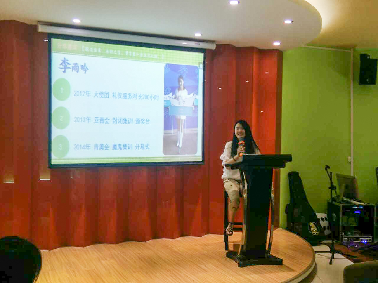 开场视频《民航欢迎你》带着大家回顾了过去一年里的学院风采,众多优秀学子都投入到了社会实践中去。随后,第一个环节为经验分享环节,青奥礼仪志愿者李雨吟和青奥服务队队长陈思讲述了自己在做青奥志愿者期间的酸甜苦辣,告诉大家志愿服务很辛苦的事实,但也收获了满满的快乐,坚持真心实意地做下去,意义很快会凸显。