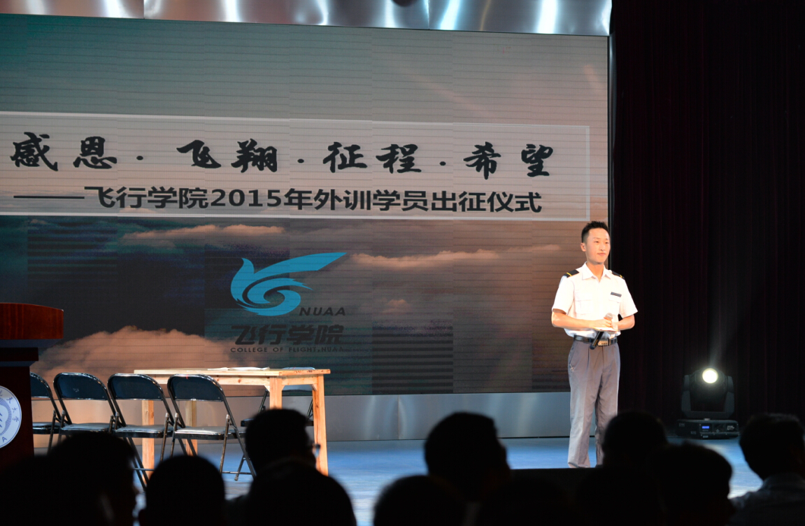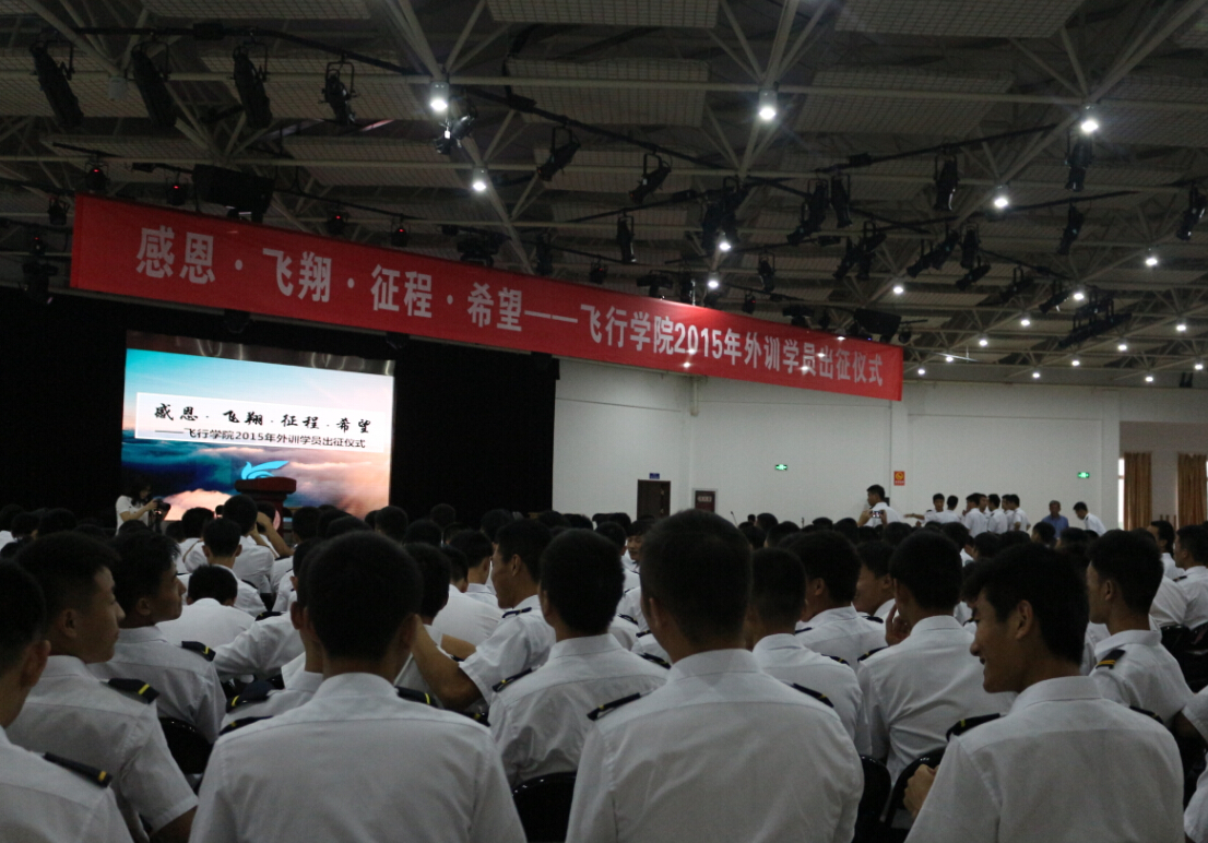 6月18日,飞行学院2015年外训学员出征仪式在将军路校区大学生活动中心举行。12级“2+2”学员为全院师生呈现了一场以“感恩·飞翔·征程·希望”为主题的精彩演出。飞行学院院长阎雷、二次元 党委副书记宋凯、飞行技术系主任丁松滨、招飞办主任于晓、招飞办其他老师、部分任课老师以及全体辅导员出席了此次出征仪式。