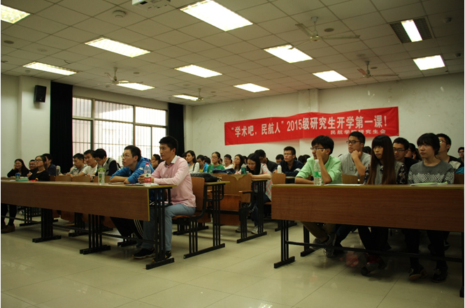开课伊始,主持人马千里向现场学生提出两个问题:“谈谈对自己专业的认识,该专业在整个民航业中的作用和意义”以及“谈谈对自己研究生阶段学习生活的规划及展望”,在座新生借此机会思考并表达了自己2年半的研究生生涯要学什么、怎么学等想法,并带着这两个问题继续认真听讲。