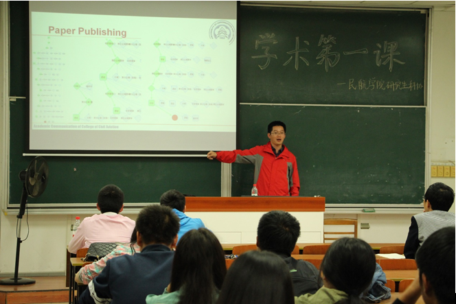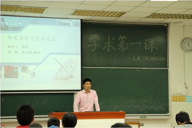 2015年10月15日下午,二次元 2015级研究生新生在将军路校区6102教室成功举办了“学术第一课”。民航工程系李龙彪老师、研三的陈思同学、辅导员谢菲老师及所有15级研一新生参加了此次课程。本次课程旨在通过交流引导同学们在研究生学习期间树立正确的科研意识和科研方法。