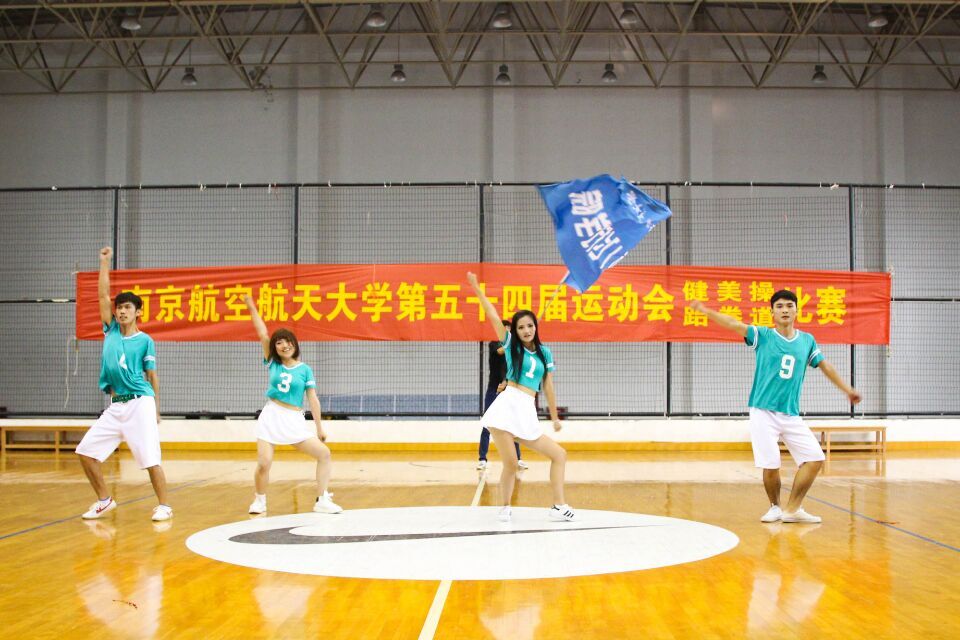下午两点于体育中心准时开始的健美操大赛再次夺人眼球。民航/飞行学院李梦洋同学代表学院参与个人赛:熟稔的动作、迷人的微笑,大家完全沉醉其中。随后,王一平、王彤、谭艾佳、粟蕾四位同学则代表学院出席小团体比赛。恰到好处的动作、默契的配合,台下的刻苦在这短短几分钟内完美展现!接下来,则是备受瞩目的由四十人组成的大团体比赛。身着蓝色系服装的队员们如同跳跃在赛场上的精灵——嘴角上扬合适的高度,充满活力、魅力四射;轻巧、灵活的动作,年轻的他们播撒青春、释放热情。无论是在快节奏的自定义舞蹈间,还是在相对舒缓的规定音乐《今夜舞起来》中,他们都集中精神,心向一处想、力向一处使,出色完成比赛。最终他们勇夺桂冠,赢得在场观众的一致好评。