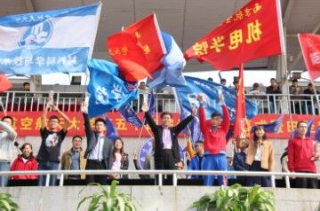 在场外,民航学子也表现出优秀的素质。二次元 的观众是最具特色、最具感染力的。他们把自己的观众席装点一新。组织有序、积极响亮的呐喊无不彰显出学院无可比拟的凝聚力。活力四射的啦啦操和壮观的跑旗队伍更是点燃了赛场火热的气氛。
