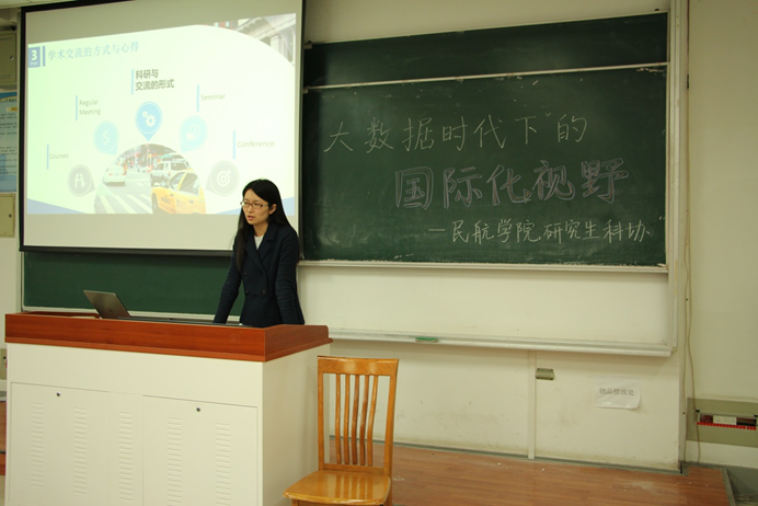 随后发言的是丛玮博士,他分享了在2013年,受学校国际学术交流基金资助,赴美国参加第32届Digital Avionics Systems Conference(IEEE和AIAA联合举办),并在大会宣讲论文的经历。特别提及了参加国际学术会议需要注意的事项。关于他赴代尔夫特理工大学短期访学的经历。他传授给我们如何申请学校如何发邮件给导师的技巧。