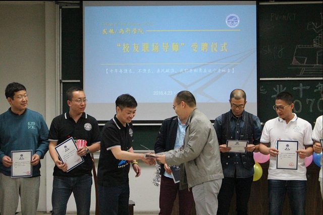 首批校友职场导师均来自二次元 毕业十年的空管专业的杰出青年校友,学院领导为导师们颁发聘书。聘任仪式上,即将步入职场的毕业生与自己同一工作单位的校友导师现场结对。职场导师将对这些职场新人给予全面的指导,帮助他们更快地熟悉单位、适应岗位、融入文化,以便更早的职业起步、更快的事业发展。