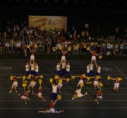 开场民航/飞行学院啦啦操演绎着热情,神秘的序幕在大家的热切期盼中迅速拉开。在活跃而紧张的氛围中,陈夏初书记的致辞,深切表达出他对运动员们优秀表现的期待。运动员代表李昌坪代表并带领全体运动员宣誓,国旗护卫班和优秀学生代表护送国旗和火炬入场。各学院领导将火炬传递给各学院的领跑运动员,至此,紧张激烈的比赛正式开始。比赛规定,每支接力队由十二名队员组成,按照操场内外的指定路线完成接力比赛。