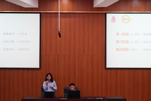 首先,傅成成老师从“实践是什么”的角度出发,向大家简要介绍了实践的具体内容以及形式,并和大家明确今年暑期社会实践的评分标准。随后,傅老师大致讲解“实践做什么”和“实践怎么做”,并提出今年学院暑期社会实践创新架构:“一个导论、三项指导、多项培训、一场仪式”,使大家对社会实践活动的流程有了更加清楚的理解。在傅老师讲解的过程中,青协下属实践部成员登台亮相并作自我介绍。