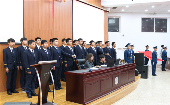 开课典礼上,为学员们举行了一场入团仪式,注视着国防生们迎着团旗入场,在飞行员合唱团的带领下高唱共青团团歌,并在国防生代表的率领下庄严宣誓:“我志愿加入中国共产主义青年团......”,勾起了大家的青春回忆,坚定了曾经立下的青春誓言。