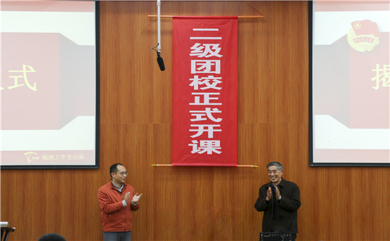 开课典礼上,一段视频为学生了解了什么是共青团;现场连线已经奔赴岗位前线或者继续深造的学长学姐们讲述他们共青团记忆;第19届学生会主席姜仕尧学长现场讲述他和共青团的缘分,分享了他从一名二级团校的学员到策划者的成长故事。