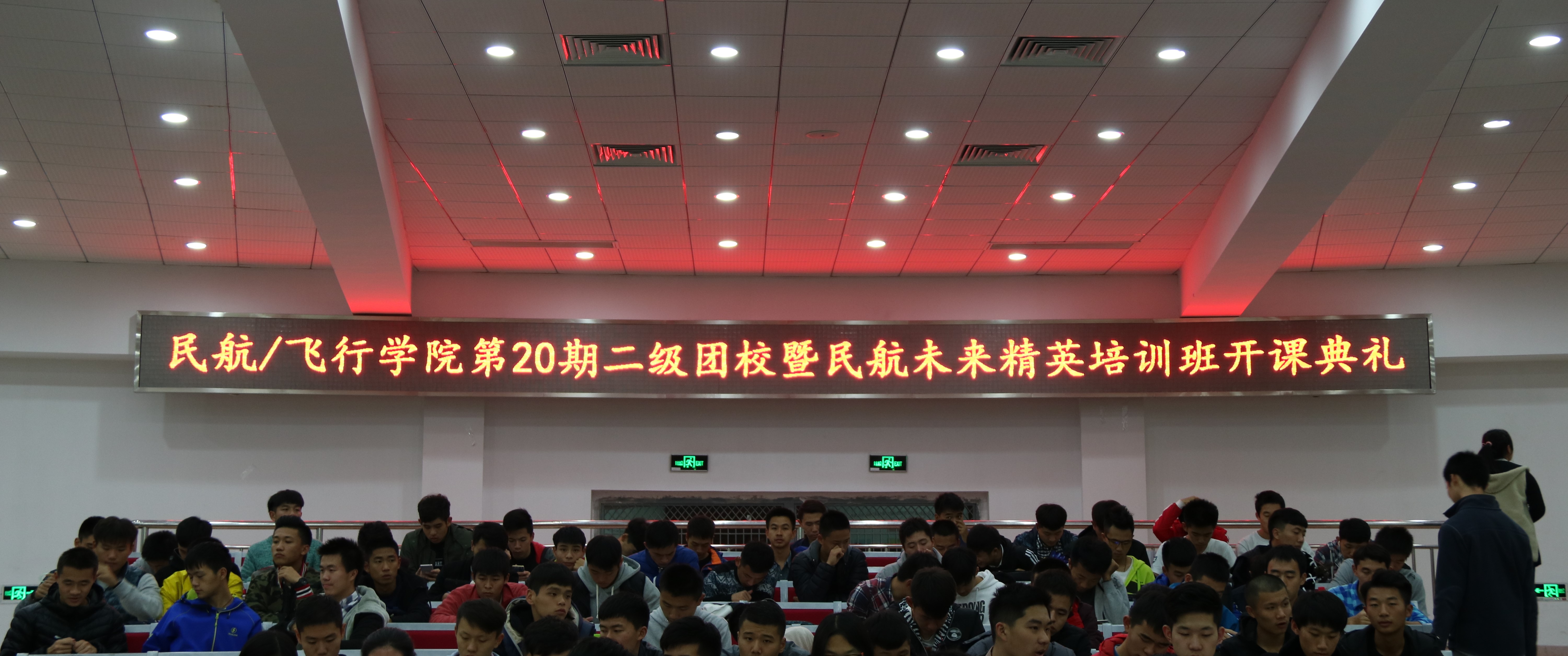 11月17日18时45分,民航/飞行学院第二十期二级团校暨民航未来精英培训班开课典礼于2110教室正式举行。关工委常务副主任丁荣茂、院党委副书记、院团委书记、全体辅导员以及260余位2016级团学干部及学生代表参加了此次开课典礼。