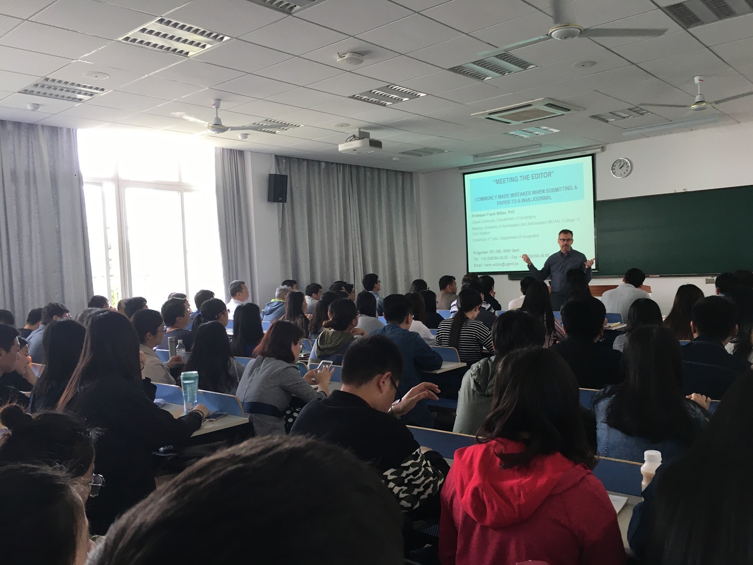 2017年4月17日下午2点,比利时根特大学Frank Witlox教授应二次元 邀请在将军路校区2号楼2105教室作了题为“英语学术论文写作:中国学者如何避免撰写及投稿误区”的学术讲座。讲座由副院长葛红娟教授主持。学院师生共计100余人参加了此次讲座。