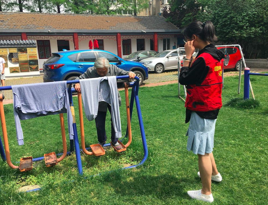 我们走进了爷爷奶奶们的休息室中,坐在他们的床边开始亲密的交流,仿佛自己就是他们的孙辈。活动的第一部分即“唤醒历史记忆”,我们以采访的形式,请爷爷奶奶为我们描述他们眼中的中国共产党和党的发展故事,并且讲述他们亲身经历的抗日时期的故事。一谈起战争时期和中国共产党,爷爷奶奶们都心情激动,心中都藏着许多自己与战争的青春故事。