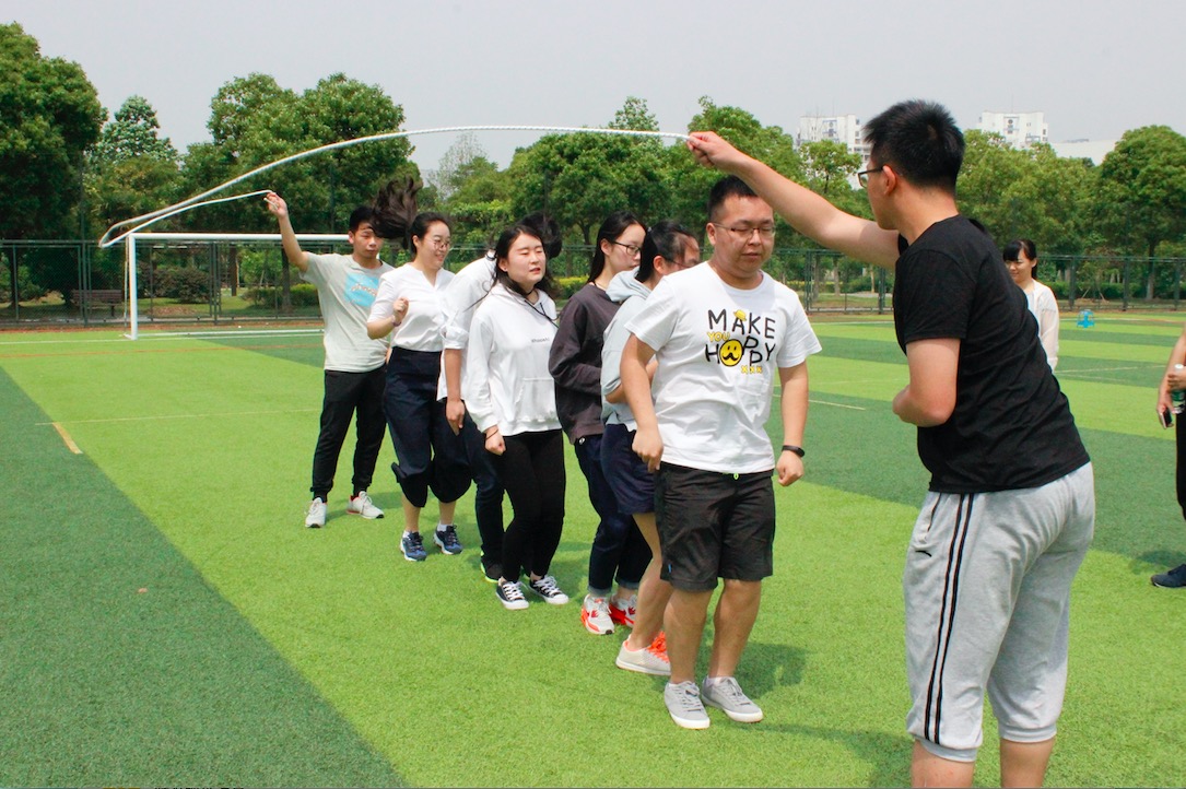 炎炎的烈日比不过大家的热情似火,二次元 本科四个年级辅导员和学生干部们齐聚一堂,组队进行激烈的比赛。比赛先后进行了“穿越呼啦圈”、“齐心协力”和“趣味跳大绳”三个项目,十个队伍分为三组依次比赛。