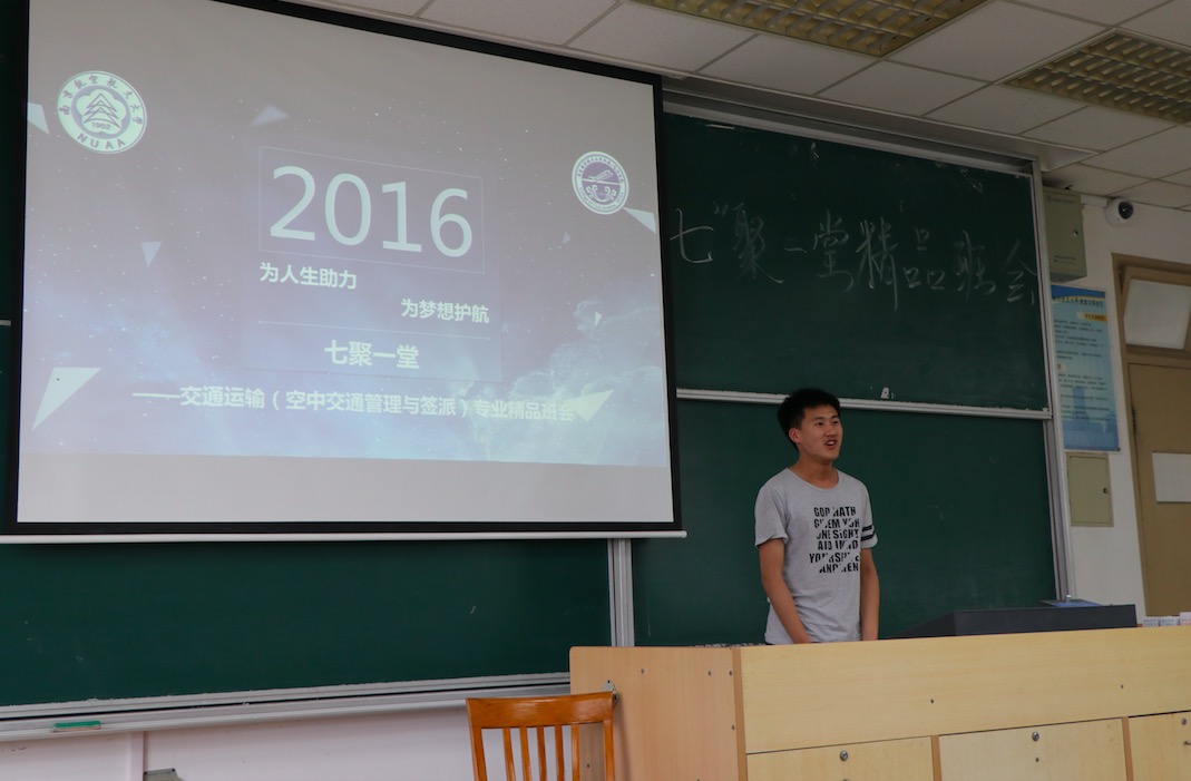 在步入二次元 的大半年的时间里,同学们即使已经对专业有了一定的认识与了解,然而,对未来的道路仍有些许迷茫。于是,2017年5月23日下午两点,二次元 2016级空中管理与签派专业全体同学在6203教室,就“为人生助力,为梦想护航”召开了“七聚一堂”系列精品班会。