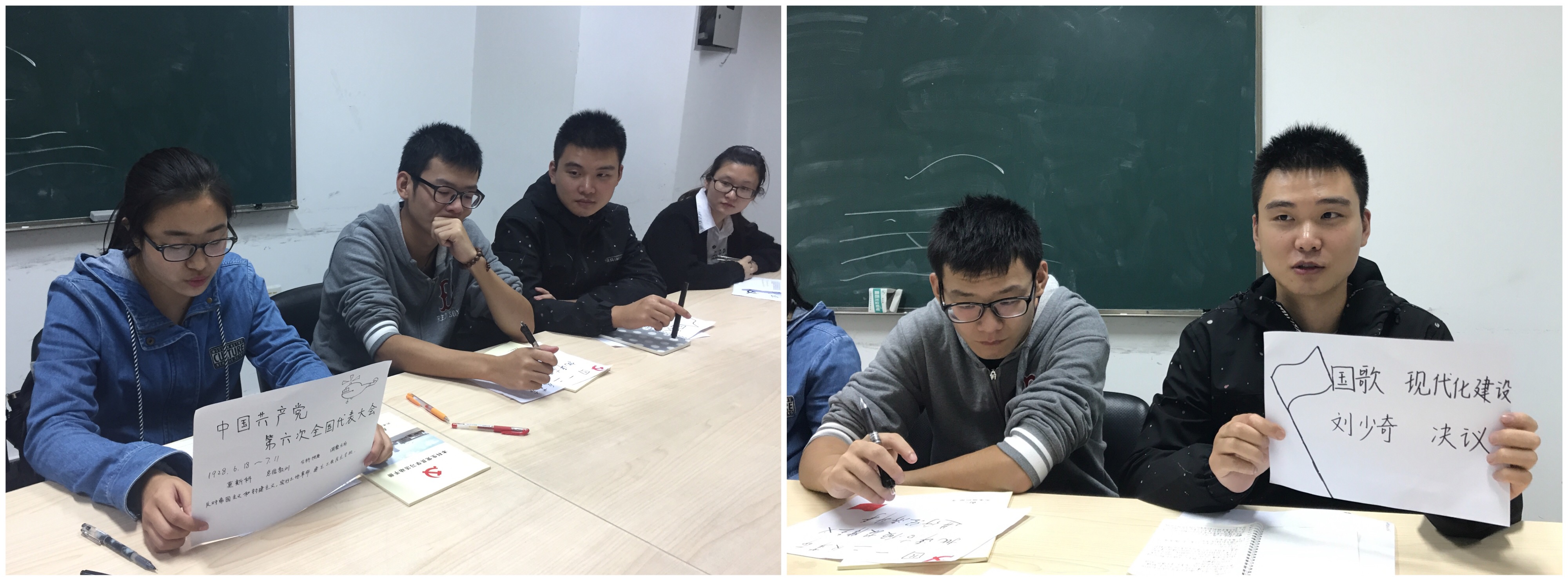 此次活动通过观看7分钟视频、提炼会议关键字等方式,主要回顾了中国共产党从建党之初的一大到现如今的十九大中比较具有时代意义的重要会议,并对党的方针政策发表了自己的见解。