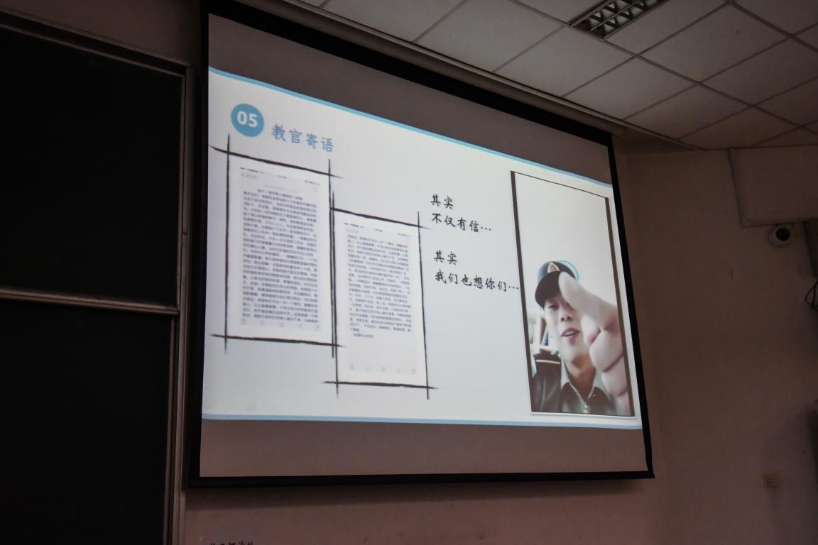 接下来是中心组心里气象部的同学采用诗朗诵的形式向南航告白,“今天我是南航民航人,明天我是民航南航人”的口号是同学们发自肺腑的告白,也是对自我和南航的认可。在这一环节的最后,中心组为全体新生准备了一份惊喜——来自家长和教官们的寄语视频。家长们的书信有着故乡和远方的牵挂,但更多的是对孩子的期待和鼓励;教官们的玩笑引来了很多欢笑,但更多的是许久不见的不舍和想念。同学们收到了来自家长和教官们的祝福和期待,相信他们在未来的南航生活中会带着这些祝福和期待更加出彩,不断成长。