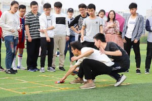 本次运动会共有4个比赛项目,分别为“九宫格干脆面连线”、“赛道踩气球”、“趣味接力”和“拔河”。其中,“九宫格干脆面连线”和“拔河”分为预赛和决赛,另外两个则是一场分胜负。两个年级共24个班级被分为12支联队,每支联队都由16级和17级的同学组成,并来自不同专业的两个班级,学长学姐们和学弟学妹们共同完成每个项目。