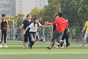 正午时分两个年级的中心组成员便开始布置场地。下午2点整由主持人和两个年级的辅导员共同主持开幕仪式,比赛期间,朱老师和范老师也参与其中,当起了裁判,给比赛更增添了一道亮丽的风景线。虽然本次活动主题为“趣味运动会”,但体育的竞争精神也有所体现。每支联队在比赛时都有裁判员在旁,四场比赛单独计分,最后每队得到的总积分计算成最后得分然后进行总排名。下午5点左右,比赛圆满结束,最终0716301班和0717703班组成的联队以45分的好成绩夺得冠军,获得本次趣味运动会的丰厚奖品——3个肯德基全家桶和40块金牌巧克力;第二名则被0716701班和0717302班组成的联队以43分的成绩夺得;第三名为0716401班和0717101班组成的联队,并获得丰厚奖品。