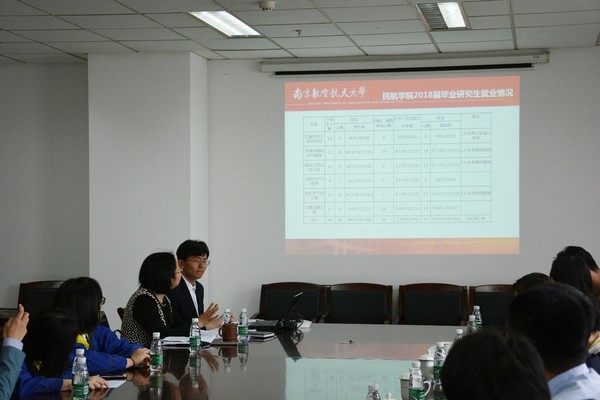 座谈会上,研究生辅导员首先对2018届毕业研究生的就业情况进行了细致全面的介绍,内容涵盖毕业生的就业领域分布、就业地点布局和男女生就业趋势三个方面,总结了今年毕业研究生的就业情况,并借助图表和数据对比分析,形象立体地展示了近年来二次元