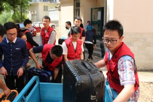 烈日炎炎,却挡不住大家的热情和干劲。在充分准备、细致分工的基础上,二次元 15级党支部的党员们和公寓服务中心党支部的工作人员们万众一心、齐心协力,帮助14、17级学生搬运行李,有序高效地完成了行李的搬运工作。