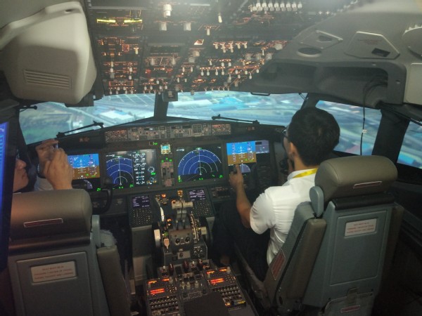 在波音上海培训中心,我校代表团与中国民航大学代表团一道,首先进行了三站式参观体验。团队代表分别观摩了787模拟客舱特情处置以及舱门操作,学习了737MAX驾驶舱仪表操作,体验737MAX全动模拟机的着陆操作。