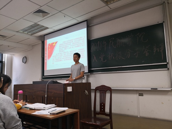 飞行学院辅导员张学财老师提出,申请入党首要解决的问题是什么?应当是端正自己的入党动机。正确的入党动机,是正确行动的精神力量。有的人虽然组织上入了党,但端正入党动机的问题并没有完全解决;有的入党时动机是端正的,但后来放松了政治学习和思想改造,革命意志衰退了,甚至蜕化变质了。在答辩会的最后,飞行学院辅导员张学财又提出,积极分子应该时刻以党员的标准严于律己,发挥好先锋模范带头作用,对于党的基本理论知识要有清晰、深刻的认识的同时,端正自己的入党动机,更好地做到服务于广大同学们、服务于社会。