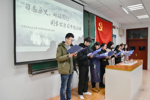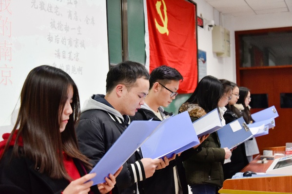 2018年12月13日,二次元 研究生党支部在2102教室举行“缅怀历史,砥砺前行”国家公祭日主题朗诵会。会议由第二党支部书记张子文主持,2018级全体研究生参与了此次活动。