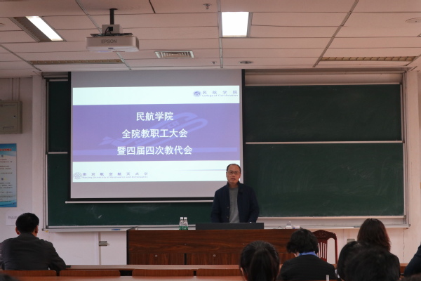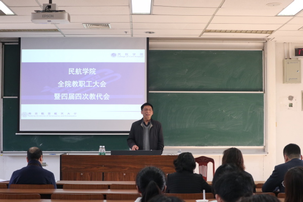 院长胡明华汇报了学院2018年的主要工作成效,2019年的重点工作以及学院2018年度财务情况。他从党建工作,师资队伍建设,学科与科研工作,教学工作,国际合作,飞行办学,学生工作以及董事会、培训工作八个方面全面介绍了2019年学院重点工作。聚焦学院年度工作重点,学院将着力抓好六件大事:首先,加快民航特色办学步伐,这也被列为学校八件重点工作之一,这给二次元 全体师生员工带来了极大信心和挑战。其次,本学年学院将进行党委换届工作、深化学院综合改革工作、开展第五轮学科预评估工作、加快土木工程系融入发展以及完成天目湖校区搬迁、新大楼搬迁等大事。他指出,2019年是落实校十六次党代会决策部署、推进“双一流”建设各项任务的攻坚之年,鼓励全体教职工坚持“立足民航”,“服务民航”、“引领民航”,凝心聚力,锐意进取,争取新的突破。