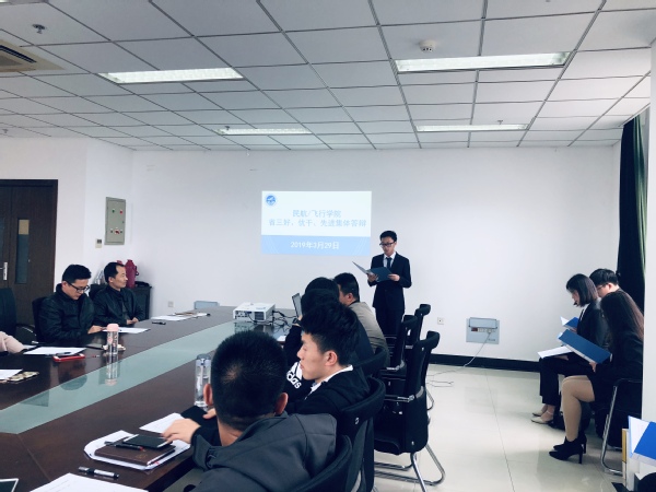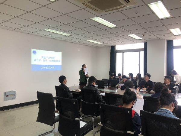 为保证省三好、优干、先进集体的评选公平、公正、公开,在学院党委、团委的统一部署下, 3月29日下午,民航/飞行学院于将军路校区一号楼19007会议室组织召开省三好、优干、先进集体公开答辩评审会。评审团的成员由三部分组成,分别为专业老师代表吴红兰老师、姜雨老师、陈大伟老师,团委书记肖杰及各年级辅导员,各年级学生代表组成。