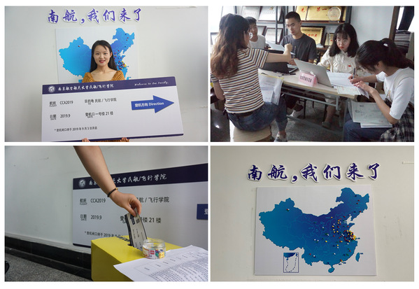 经过周密的前期准备,9月2日8点,二次元 迎新活动正式开始。核对录取通知书、登记个人信息、发放新生资料,一切都在井然有序地进行。本次活动的一大亮点是每位新生手持象征着正式成为民航研究生的登机牌;在“研途时光机”记录下对未来生活的期待和愿景,勉励自己不忘初心;用图钉在地图展板上标记家乡的位置并拍照留念。此刻来自五湖四海的同学们齐聚民航大家庭,有了一个共同的名字——“南航民航人”。