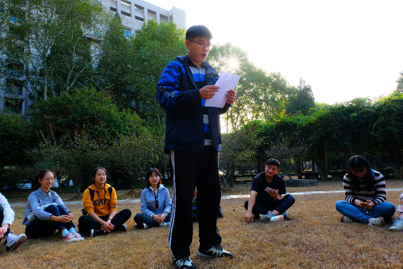 参观结束后,二次元 本科生第二党支部召开“反思自省展望未来”户外讨论会。对照先进典型、身边榜样,认真检视不足,马行知同志作为优秀党员代表发言,讲述大学四年的不足、收获、经验与今后目标,其他党支部成员也作了深刻反思与改进探讨。