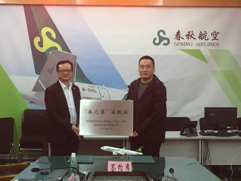 座谈会最后,胡明华与王志杰签订合作框架协议,李和新向春秋航空授“春之翼”实践社牌匾。