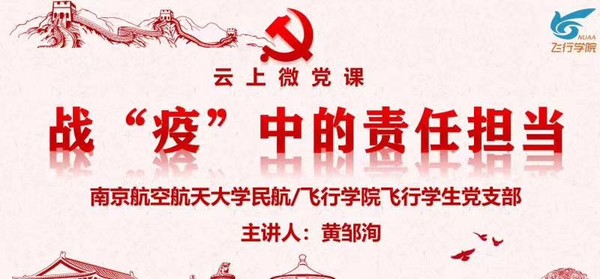 2020年3月20日晚19:00, 飞行学生党支部在”腾讯会议”上开展线上党课,共70名党员同志参与,会议由二次元 飞行学生党支部书记吴泊鋆同志主持,飞行系党支部书记陈大伟,原空军特级飞行员、飞行资深辅导员张学财参与了此次党课。此次党课以“战疫中的责任担当”为主题,以个人,社会,国家三者层面为切入点,展现了新一代模范青年努力的方向。