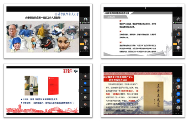 为贯彻落实校党委关于疫情防控中进一步加强支部党建和新时代爱国主义教文件精神,涵育支部党员新时代家国情怀,强化党员先锋模范意识,增强支部党员“三自—自律、自护、自修”教育引导,4月4日下午,二次元 研究生党支部与经济与管理学院、马克思主义学院党支部联合开展云上战“疫”微论坛,活动以支部三“微”党建平台为依托,结合“云上党建”形式展开。活动邀请到了马克思主义学院徐军教授担任活动嘉宾,学院研究生党员蔺瑞管、郑海龙进行了党课主题分享,来自二次元 、经济与管理学院和马克思主义学院的50余名研究生党员参加了此次微论坛。