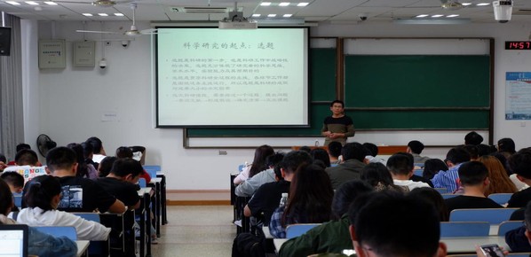 讲座伊始,刘存杰提出,作为一名研究生,摒弃机械思维非常重要。他告诫同学们应该注重在研究中培养科学的思维方式,学会用不确定的眼光看问题,继而用充足数据和正确理论消除问题中的不确定性,而这一过程正需要阅读和借鉴大量的文献,进而引出了开题工作准备与文献综述方法这一讲座主题。随后刘存杰从概念、意义、思路三个层面上详细介绍了文献调研,揭示了文献调研对于开题工作乃至科学研究的重要性。