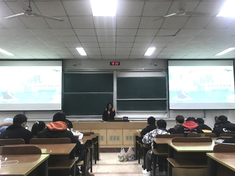 12月22日晚,二次元 17级开展了“奋勇拼搏 · 前程似锦”期末年级大会。会议由二次元 2017级辅导员朱岚主持,辅导员李卓伦和民航17级全体学生到场参加此次会议。本次年级大会主要内容为分析目前就业情况、强调假期安全问题及毕业设计相关问题,大会现场纪律良好、秩序井然。