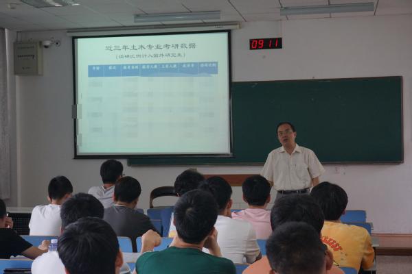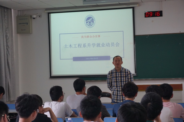 耿飞老师做总结动员,土木工程是一个古老传统但仍充满活力的行业,就业前景广泛。耿老师详细分析了升学就业的抉择、学院高水平的科研平台和雄厚的师资力量以及业内较高的社会声誉。鼓励大家通过考研提高自己的专业知识与科研能力,用恒心和信心积极面对考研以及就业,充分利用好大学剩下的时光,为自己美好的未来拼搏奋斗。