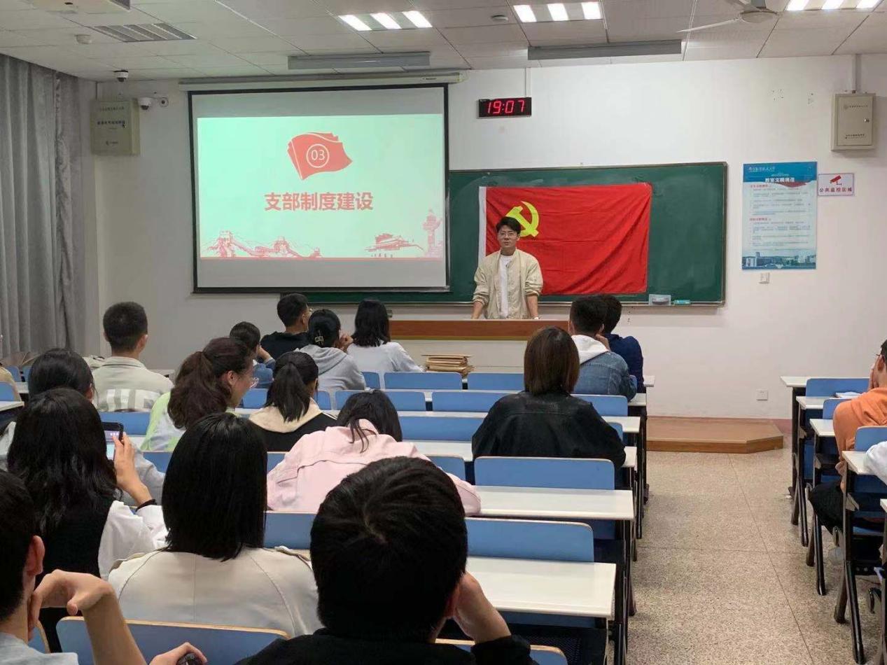 首先,党支部书记王梦尹向全体党员介绍了支部基本情况,接着21级硕士生党支部全体支委作自我介绍,描述自身工作职责并对未来进行展望,展现出全体支委争取推动支部建设全面过硬的信心与决心。