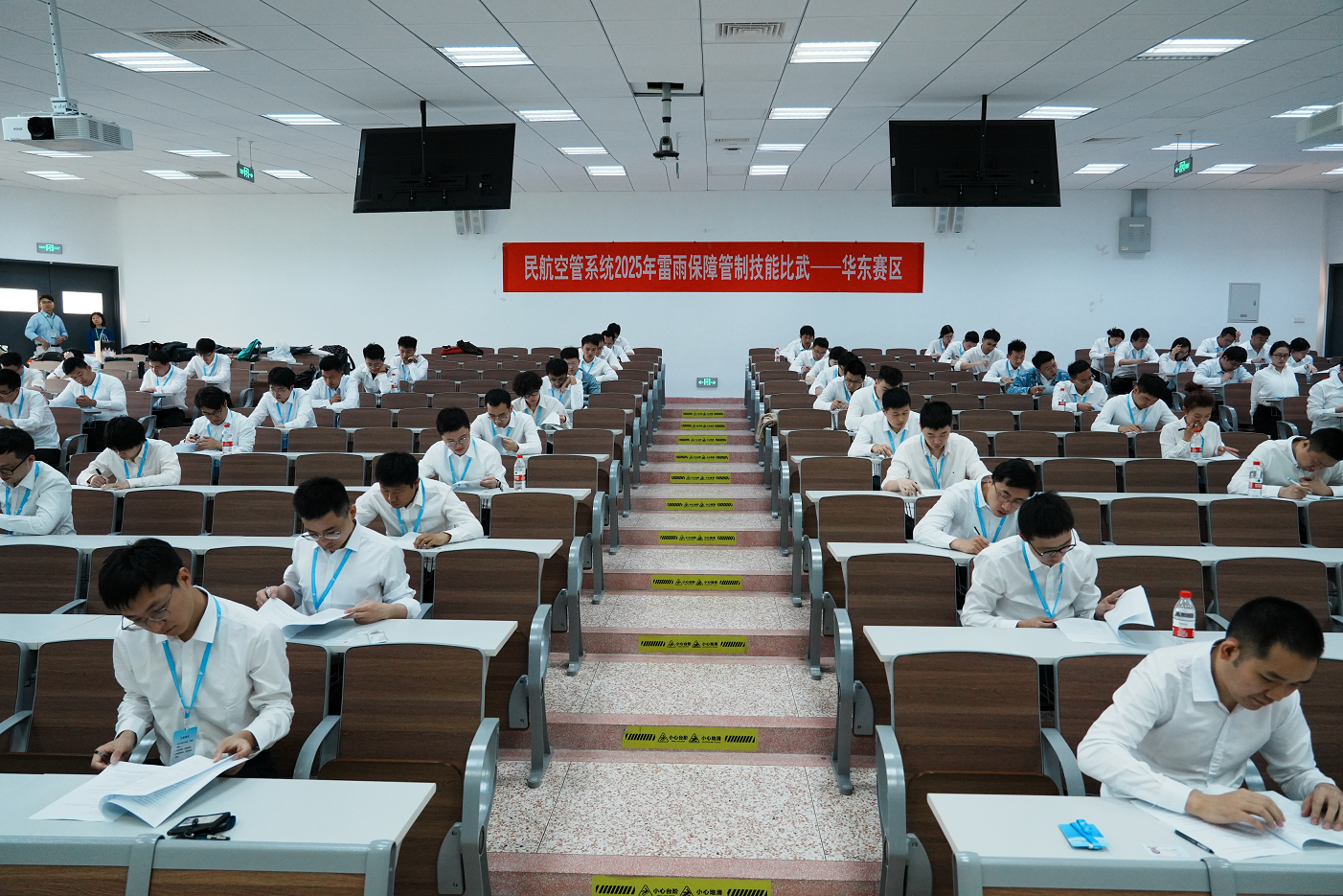 作为本次华东地区赛事的协办单位,二次元 积极参与组织筹备与赛事保障工作。赛前,学院成立专项工作组,统筹协调场地布置、设备调试、人员接待等各项工作,确保赛事顺利进行。并积极配合华东空管局开展赛前动员会议、试题抽取、模拟机适应性训练等工作,全面满足87名参赛选手、3个岗位类别、11套模拟机设备(含备份)的使用需求。
